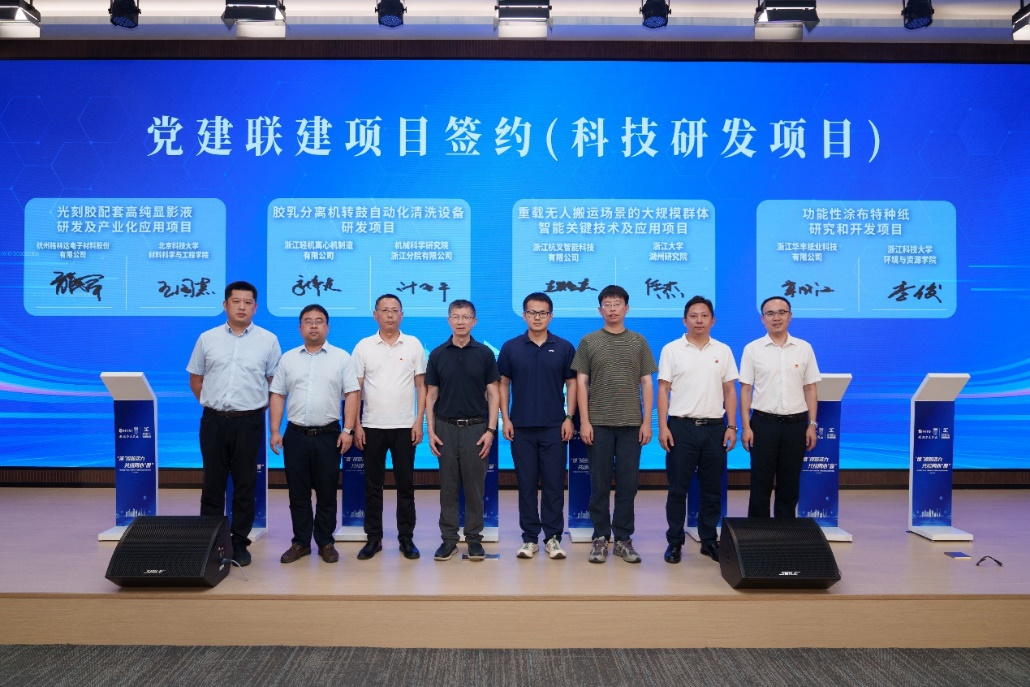 会上,杭州市经信局(市数字经济局)党组书记、局长王越剑为本次活动致辞,杭实集团党委书记、董事长钮健围绕坚持党建引领、构建产业生态、深化创新合作三方面提出要切实把党的政治优势、组织优势转化为企业的创新优势、发展优势与竞争优势进行讲话。李俊书记代表学院党委与杭实集团党委进行党建联建项目(科技研发类)合作签约。在企业交流环节,学院与会人员与杭实集团、浙江华丰纸业科技有限公司相关人员围绕双方党建联建、合作机制等方面进行了深入交流。未来,双方将通过党建联建推动教科人一体化发展、功能性涂布特种纸研究和开发项目研发、产教融合等多个领域开展深度合作。