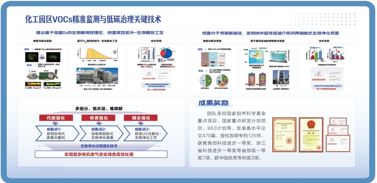 (1)化工园区挥发性有机物精准监测与低碳治理关键技术及应用,浙江省人民政府,科技进步,省部一等奖, 2024