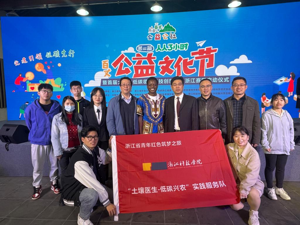 中国生物多样性保护与绿色发展基金会副秘书长肖青,浙江省科协一级巡视员姜长才,浙江省政府法制办一级巡视员吴强军,浙江省社会主义学院副院长沈慧虹,浙江科技学院副校长单胜道,杭州市科协副主席周力军,浙江省生态环境宣传教育中心副主任陈利等领导和专家出席活动,并共同启动首届大学生低碳循环科技创新大赛浙江赛区活动。余杭区委常委、副区长顾国煜为本次活动致欢迎辞。