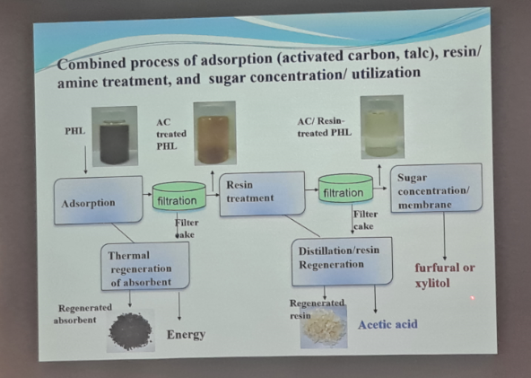 报告中,倪院士首先简要介绍自己的科研方向并对溶解浆的含义、性能要求、制备工艺和实际用途做了讲解,较为详细地阐述了纤维活化在溶解浆制备过程中的重要性以及常用的活化方法和作用机制,随后以生动的方式重点讲述了预水解在改善溶解浆性能方面的效率、预水解液组分回收的意义以及木片预水解液的化学组成及其分离方式,强调生物质精炼在绿色发展过程中发挥的实际作用。