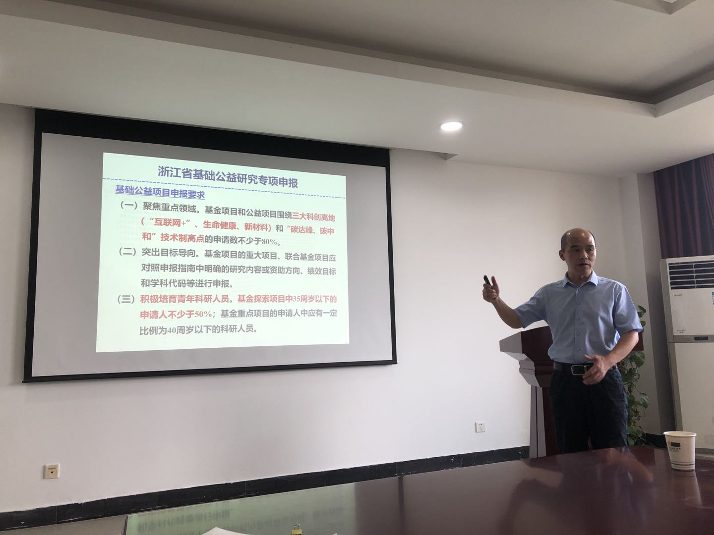 教师开展了一场题为“浙江省公益/重点研发项目申报体会与经验交流”的主题报告,胡志军副院长和二十多位教师参加了报告会。