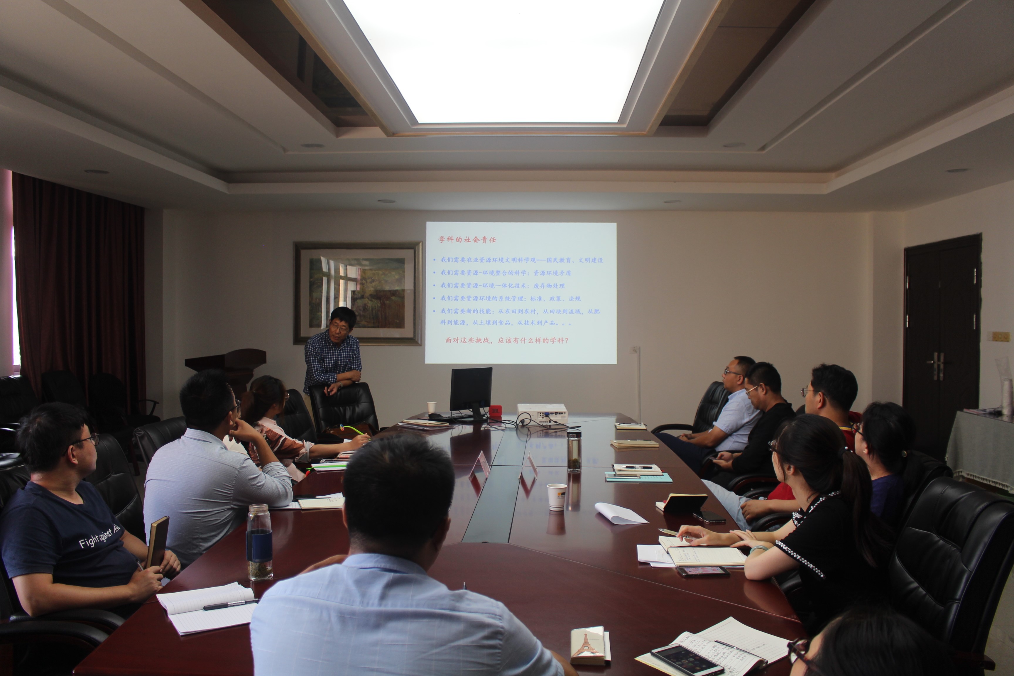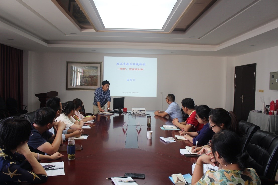 潘根兴教授作为南京农业大学土壤学重点学科带头人,长期致力于土壤环境、土壤微生物、生物质炭化技术与产业化应用的研究。报告会上,潘教授结合自己对学科领域充分的认识及思考,由浅及深、由表入里地讲述了农业资源与环境学科的内涵、发展背景、现状和需求,总结了学科的发展特点和社会责任,明确了“农业、农村、农民和谐发展,健康、公平、可持续社会”及“从农村到全球”的发展方向,具有宏观的指导意义,令现场师生受益匪浅。报告最后,师生们就学科前沿进行了热烈地交流讨论,对学科有了更深刻的认识,并开拓了科研道路。