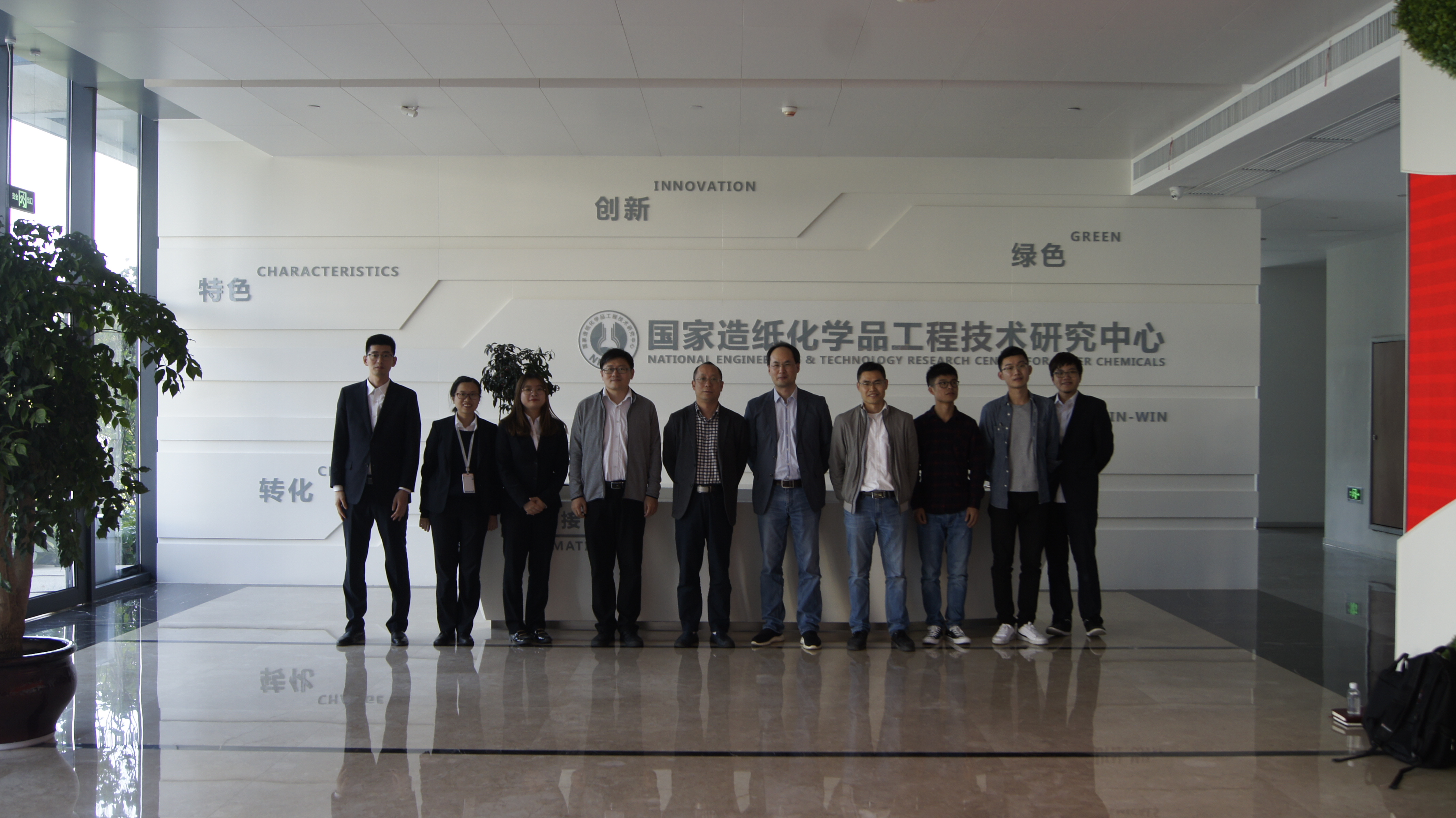 院长沙力争教授、轻化工程系主任张学金副教授、郭大亮副教授及研究生马超、胡浩威等一行五人到国家造纸化学品工程技术研究中心开展学术交流。国家造纸化学品工程技术研究中心王立军教授、吴盛恩工程师、陈南男工程师、文俊超工程师及莫紫玥工程师等专家参加了此次交流会。