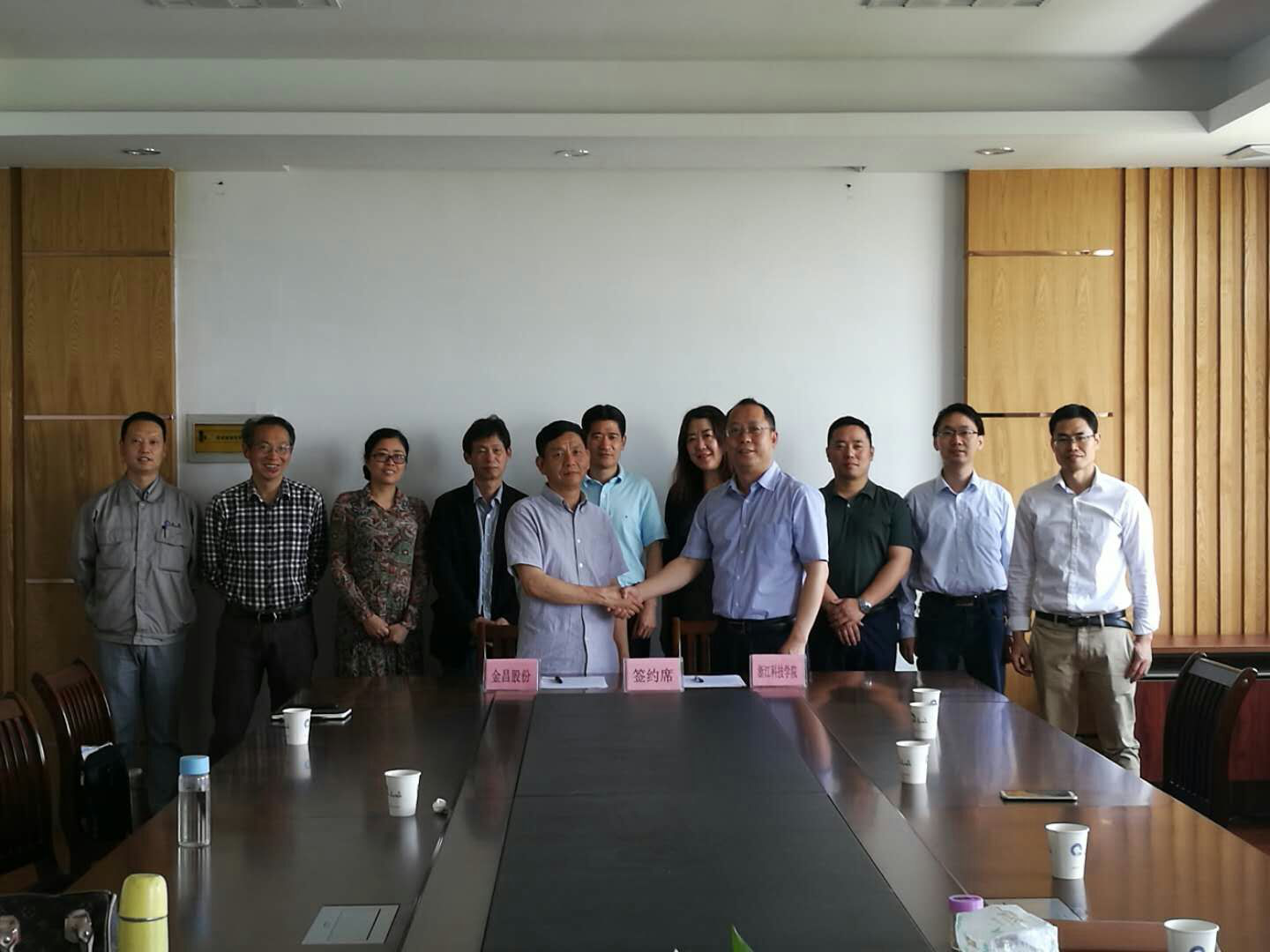 院长沙力争教授签订《浙江金昌特种纸股份有限公司/浙江科技学院战略合作协议》。