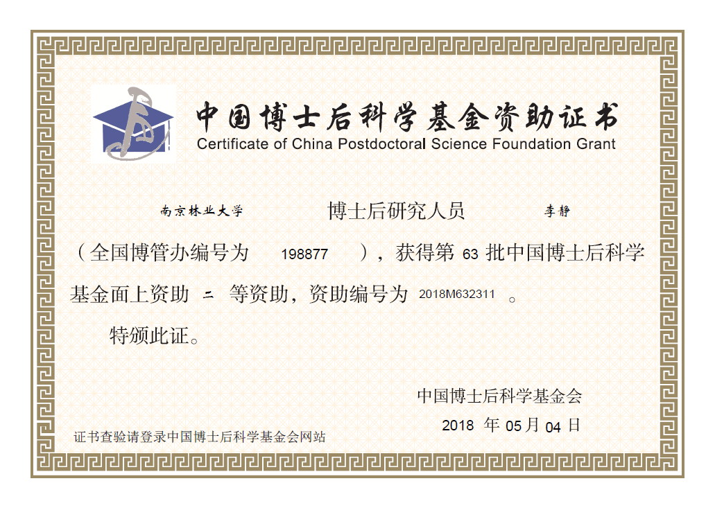 李静博士申请的项目《乙醇体系分离木素过程中苯酚诱导氧气的传质机制研究》成功获批轻工技术与工程一级学科的面上资助(资助编号:2018M632311)。该项目将依托我校浙江省废弃生物质循环利用与生态处理技术重点实验室、南京林业大学博士后流动站、浙江景兴纸业股份有限公司博士后工作站完成。