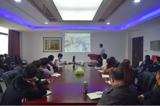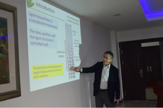 “3R”学术论坛作了题为“Chemical mapping of water-soluble compounds in plant by Cryo TOF-SIMS”的精彩学术报告。院长沙力争教授等轻化工程系全体教师、及诸多研究生、本科生参加了本次学术报告会。报告上,福岛和彦教授对其实验室研究团队课题植物细胞壁生成与木素生物合成机理作了细致讲解,介绍了冷冻扫描电子显微镜(Cryo SEM)、飞行时间二次离子质谱仪(TOF-SIMS)等世界顶级分析手段在该领域研究应用。