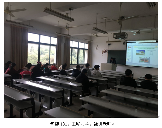 包装181,工程力学,徐进老师,应到18人,7:50分到教室8人。教师备课充分,课堂氛围较好,部分同学积极性有待提高。