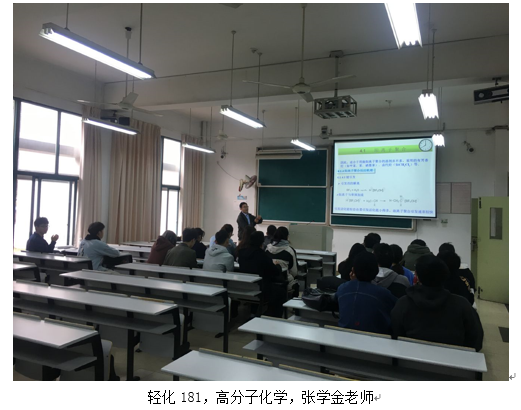 轻化181,高分子化学,张学金老师,应到27人,7:50分到教室10人,请假1人。学生听课较认真。