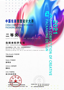 在自主命题设计板块,设计围绕大赛给定的“作品分类”设计范围,不限主题,自由发挥,自定主题内容。在班主任陈玲江老师的指导下,来自包装181的同学们从包装结构设计、包装视觉设计、材料工艺设计等多方面出发,经过对作品的不断完善,近日大赛结果新鲜出炉,二等奖1项,三等奖4项,优秀奖13项!以下为获奖情况部分展示:
