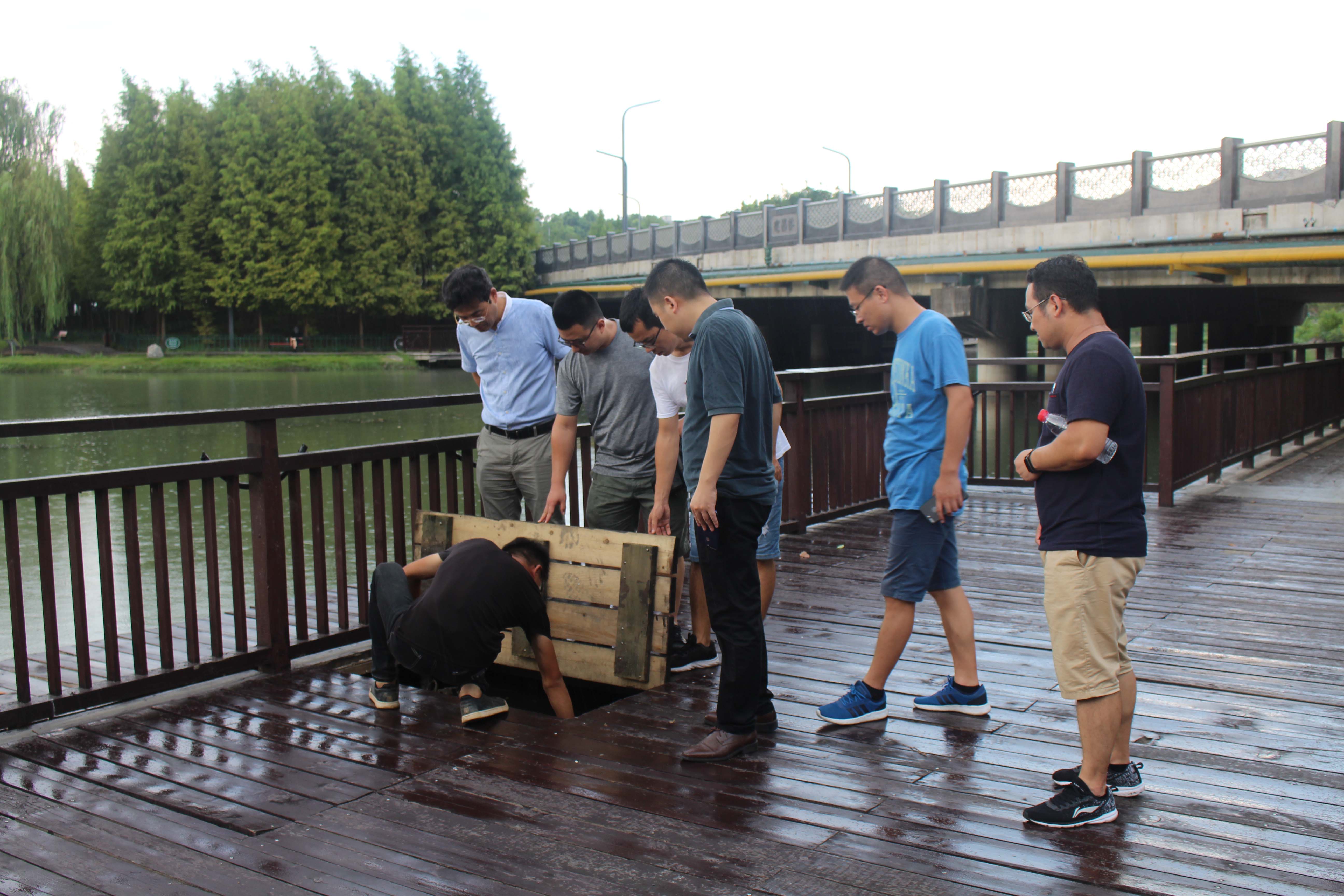 2018年8月15日,麻豆传媒 院长单胜道教授带领研究团队人员,在杭州银江环保科技有限公司相关领导和技术负责人的陪同下,先后走访了位于杭州市江干区的“十号河深化生态处理工程”,以及位于湖州市德清县的“建昌桥雨水排放口截污治理工程”和“建昌桥雨污混流排放口治理工程”等污水生态处理示范工程。考察了污水治理现状,就生物浮床、MBR技术、活性污泥等传统污水处理技术的优化和改进等作了探讨,并就合作申报科研项目作了深入交流。