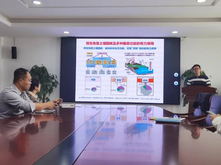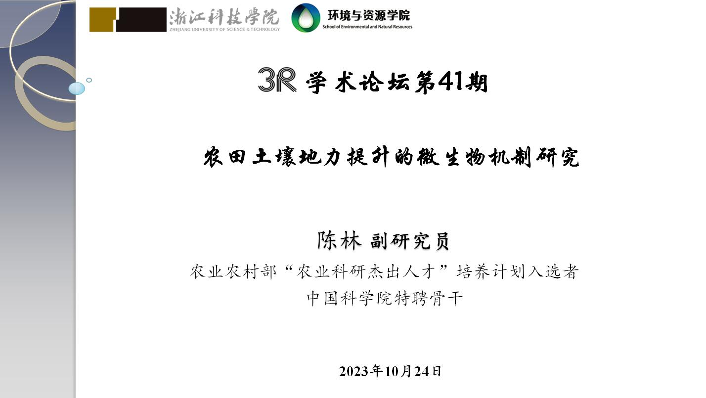 2023年10月24日上午,中国科学院南京土壤研究所陈林副研究员来访学院并作“3R”论坛第41期学术报告“农田土壤地力提升的微生物机制研究”,报告会由学院副院长张进教授主持,环境工程系专业教师和研究生等30余人参加并聆听了报告。
