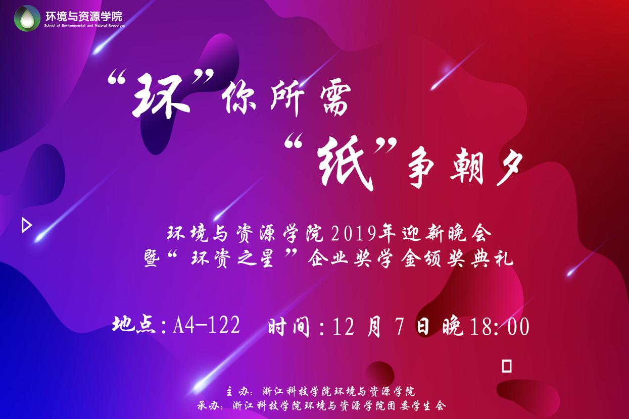 2019年迎新晚会暨“环资之星”企业奖学金颁奖典礼在闻理园A4-122隆重举行。