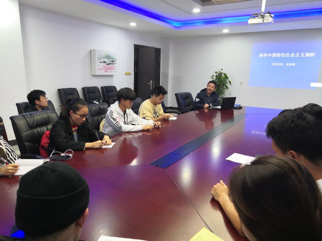 在简短的开场介绍过后,范书记开始了他的授课。范书记从中国特色社会主义与十九大以来的习近平新时代中国特色社会主义思想的演变,介绍了我国的社会主义是科学的并且有着鲜明的中国特色,并指出新时代中国特色社会主义是历史的必然选择,也顺应趋势,符合广大人民的根本利益。在课程的最后,范书记对本期党课成员提出了要求,要求大家要经常进行自我总结,要坚定自己的信仰。
